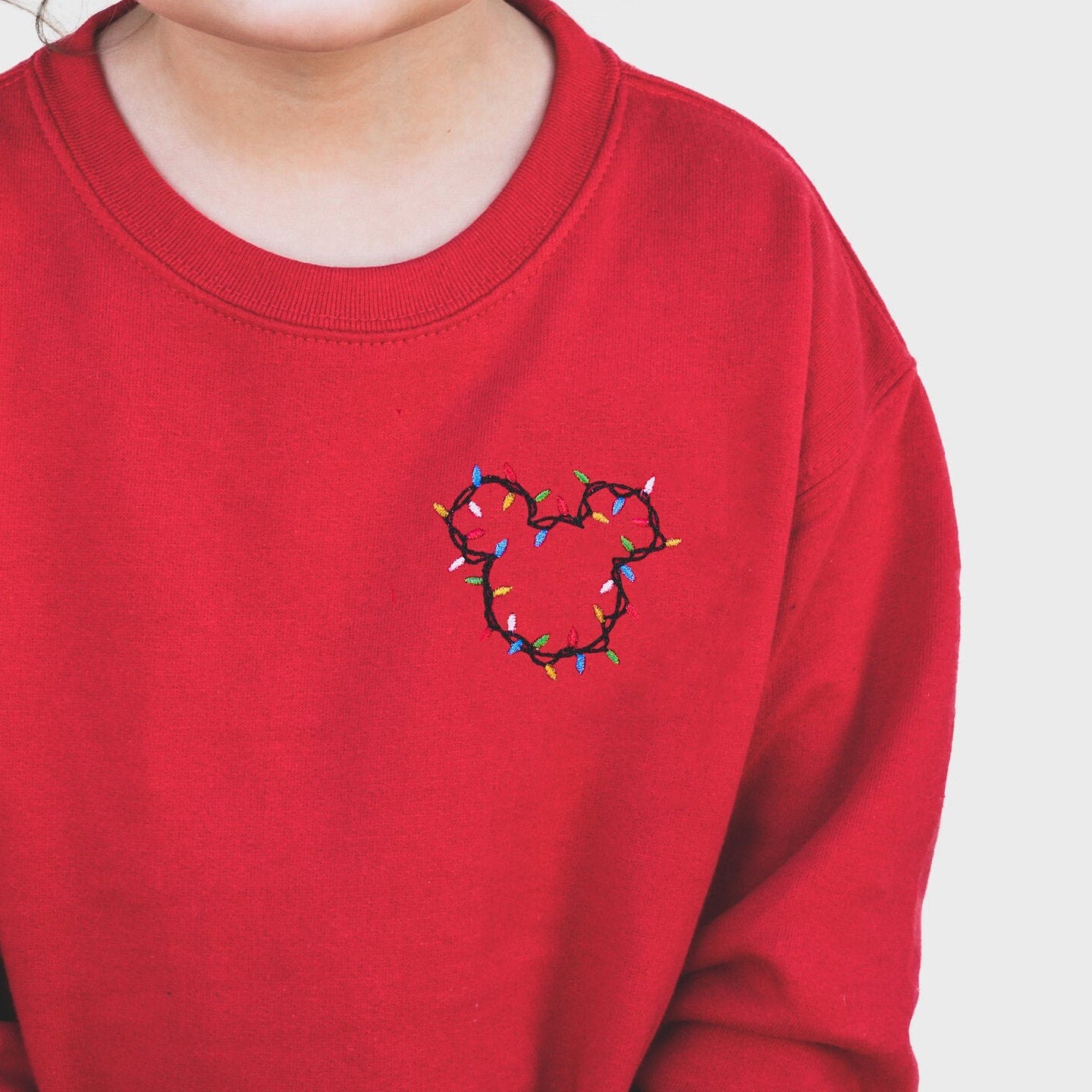 It's the merriest time of the year here at Eli + Emery! Whether you’re vacationing at Disneyland, Disney World, or taking a Disney Cruise, our Mickey Christmas Lights embroidered sweatshirts are sure to be a showstopper! This collection is available in sizes for the whole family - perfect for matching family Christmas Disney outfits, Disney gifts, holiday parties and of course, magical and memorable photos!